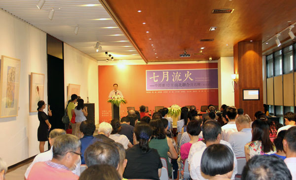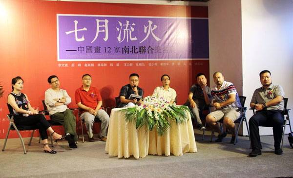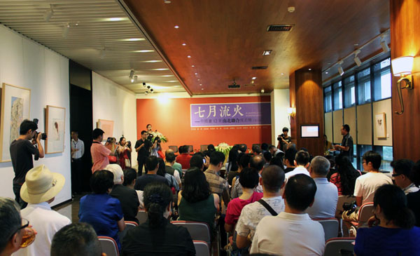 8月9日(周六)下午3时,七月流火——中国画12家南北联合提名展(杭州站)在信雅达•三清上艺术中心隆重开幕。共展出李文亮、茹峰、赵跃鹏、林海钟、韩璐、汪为新、张明弘、杜小同、秦修平、罗颖、马骏、余宏达创作的72幅水墨新作。