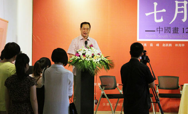 北京正观美术馆馆长孙志中致开场辞,讲述“七月流火”展览的主旨及策划思路。他表示:“在如今复杂多元的艺术环境下,要用理性的眼光和认真的态度去梳理艺术流派,希望此次联展能够促进南北方的艺术交流,希望北方的一些艺术语言可以带给南方观众一些思考。”