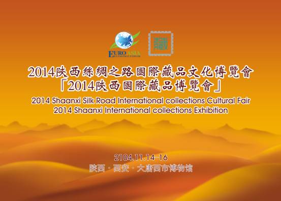 由中国国际贸易中心股份有限公司、欧亚经济论坛秘书处主办,大唐西市博物馆、北京国贸国际会展有限公司、中天会议会展(陕西)有限责任公司承办,西安曲江文化旅游股份有限公司等企业协办的,2014陕西丝绸之路国际藏品文化博览会暨2014陕西国际藏品博览会将于2014年11月14日—16日,在西安市著名的大唐西市博物馆举办,展出面积包括博物馆的遗址大厅,艺术空间以及艺术馆三个部分。博览会将分为古玩艺术品展区;海峡两岸高端艺术品展区;古典家具、红木雕刻展区;唐卡及佛教收藏品展区;书画展区;茶香道展区;珍贵邮票、钱币、徽章展区等等,集中展示来自世界各地的各类收藏品。