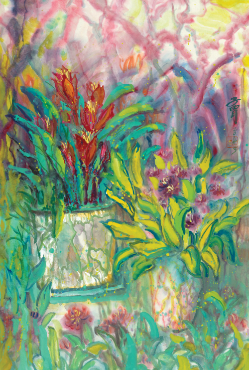 ↑《与花邂逅》 陈子胄 国画 46×70cm 2014年