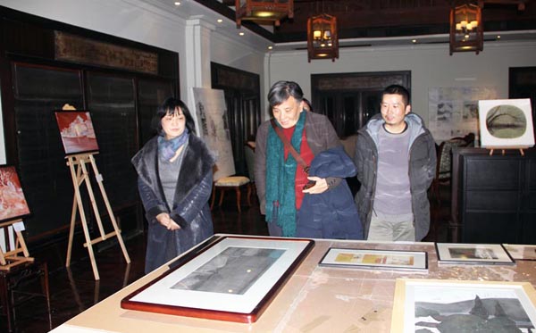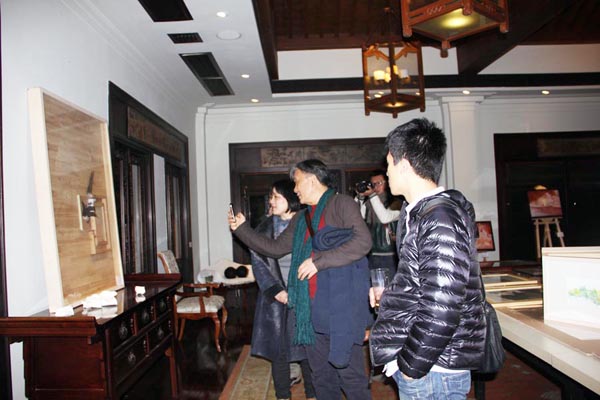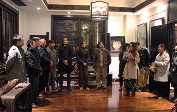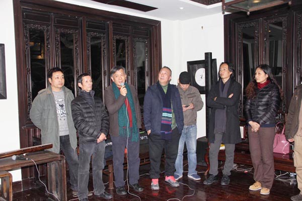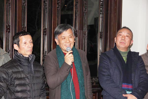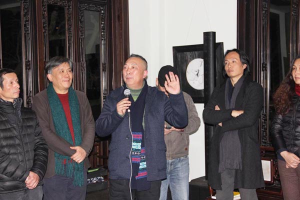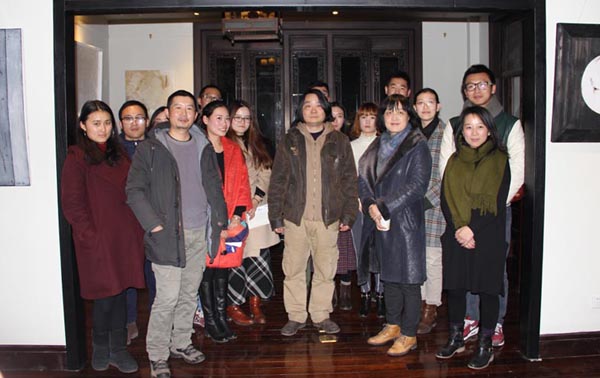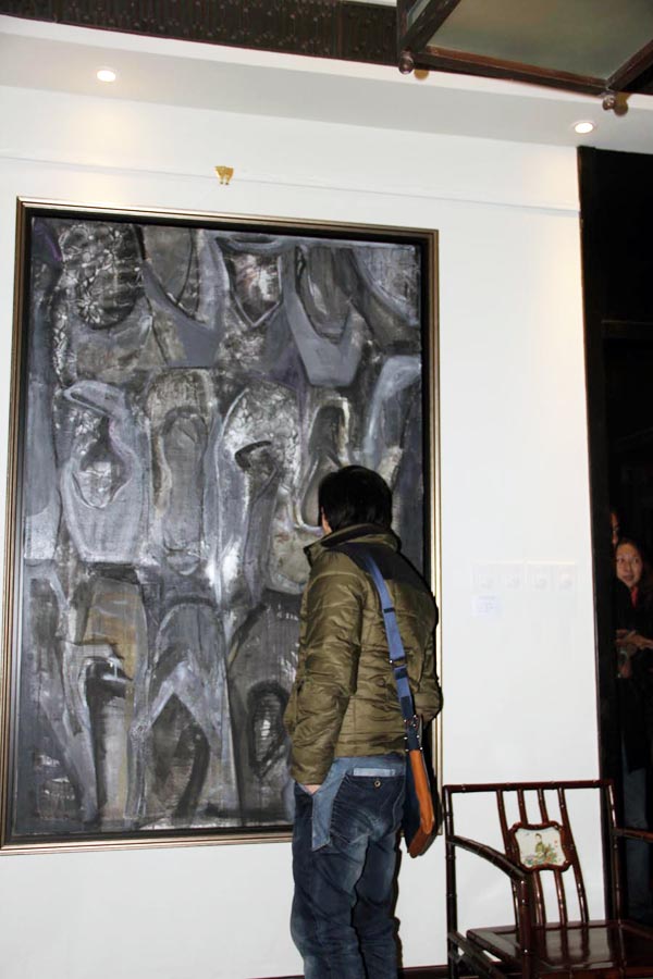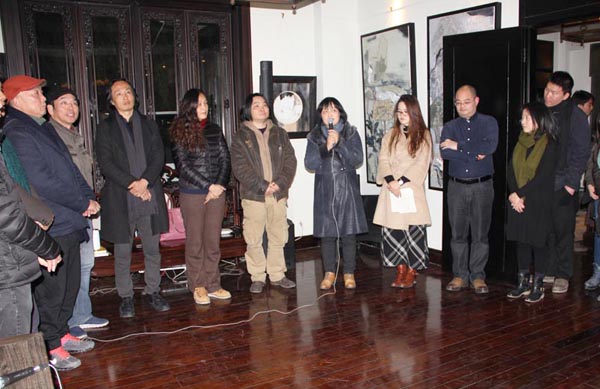 由中国美术学院研究生处、油画系第五工作室主办的“艺术春天·中国美术学院研究生联展系列展之“离形·西湖绘事”——油画系第五工作室研究生作品展12月16日晚在杭州西湖新天地一号涌金楼开幕仪式。中国美术学院油画系主任杨参军教授、副主任章晓明教授、孙景刚副教授,以及第三工作室的焦小健教授、第四工作室的井士剑教授、系办郑莹老师,院美术馆执行馆长杨劲松教授,与工作室导师陈焰副教授、何立老师和黄庆副教授一起出席了开幕式。杨参军、杨劲松、井士剑和陈焰老师分别代表油画系、美术馆、和工作室导师发言,对展览有所寄语,并预祝展览成功。画展在一曲《平沙落雁》的古琴声中开幕,并将持续到元月四日结束。