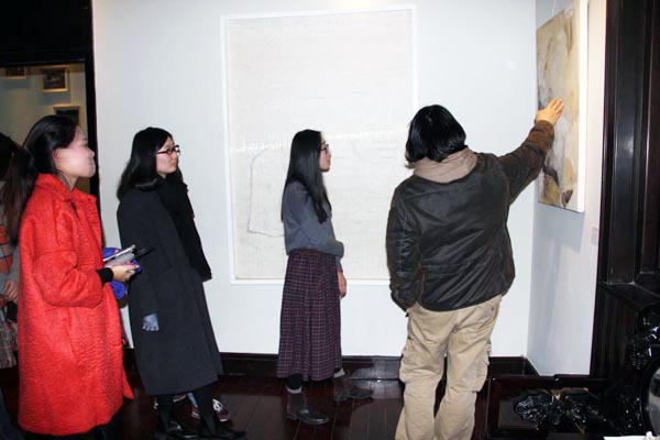 中国美术学院油画系副教授井士剑在展览现场