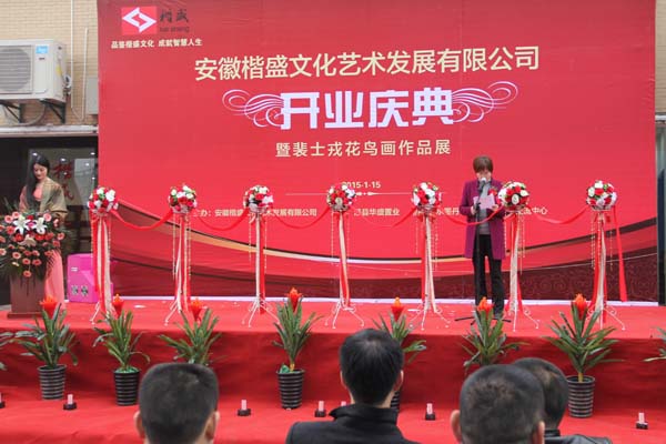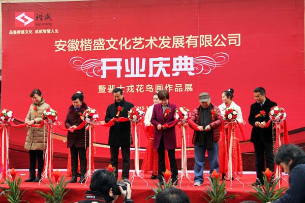 1月15日,由安徽楷盛文化艺术发展有限公司主办的“裴士戎花鸟画展暨楷盛美术馆开馆仪式”在安徽泾县隆重举行。县四大班子、县各部委、局派员祝贺,来自安徽、浙江等地的国画家、书法家及各大媒体记者和文化公司代表200余人出席开幕仪式。