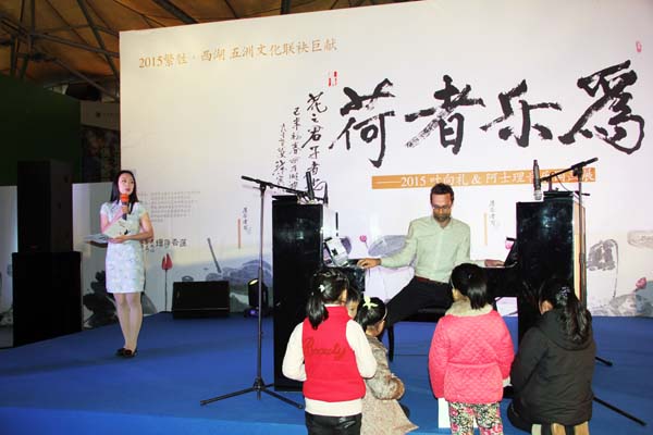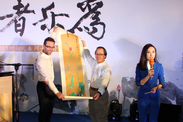 而画展现场,主办方五洲文化和繁胜.西湖还请来了德国有着“钢琴魔手”之称的年轻钢琴家阿士理为画展助阵,更为画展增添一道靓丽的风景。一边是极具特色的中国水墨风,一边是激情绽放的西洋乐,