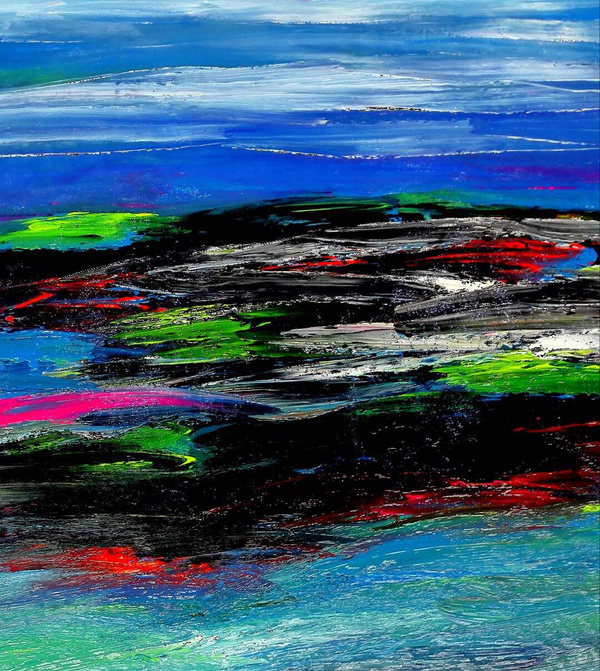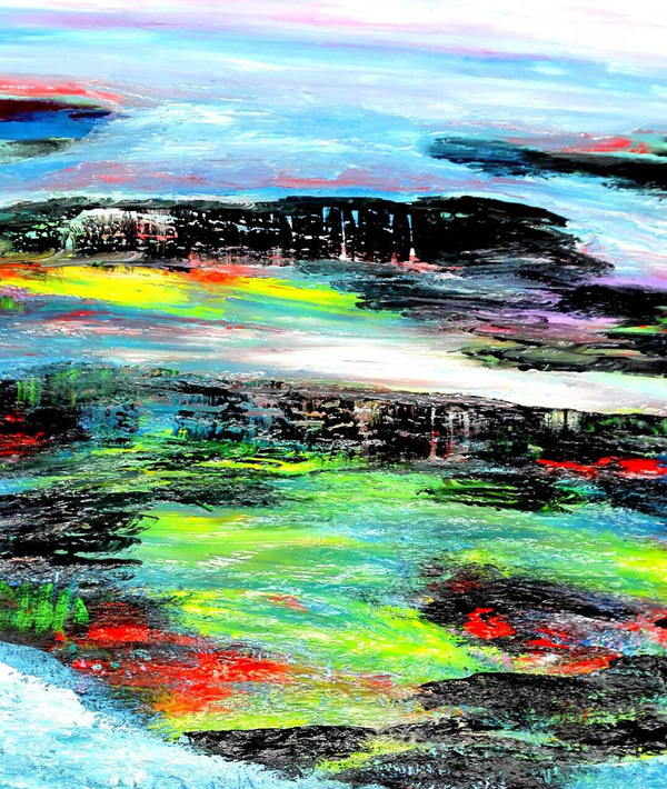 在刘佑局的画中,读到的是画家对艺术前路把握自信满满的胸襟,是壮汉擂鼓自然浑和的轰鸣。刘佑局用富有韵律和光感的色彩变幻,打开了中国水墨画的绘画新空间。别具一格的张力,过目不忘的视觉冲击力和旺盛的生命力,将中国画的水墨精神倾泻而出。