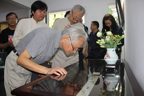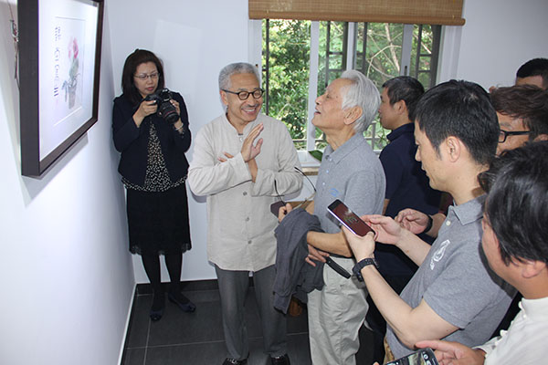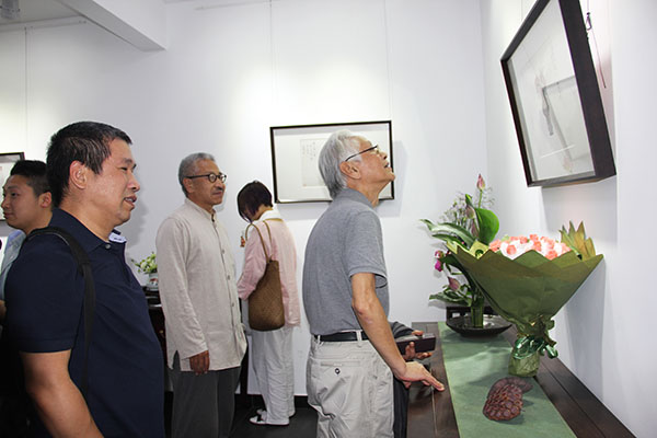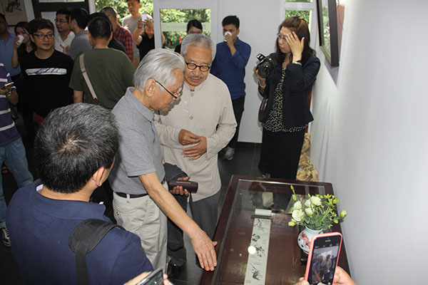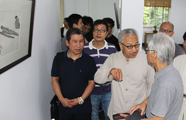 著名画家童中焘、学术主持毛建波及梅墨生等在展览现场