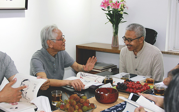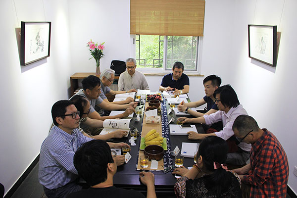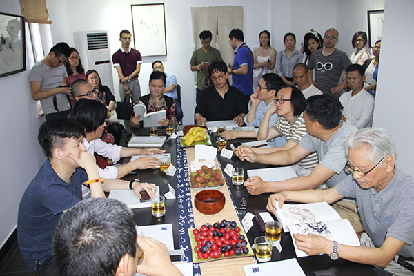 下午3:30时举行“饯春心情·梅墨生花鸟小品展暨《西湖画丛》第二辑首发式”雅集谈艺,由著名美术史论家毛建波主持,著名画家童中焘、范晓文、罗剑华、茹峰、金心明、章耀、邢鸽平、何兴泉、蔡树农、林海钟、杨中良等分别就梅墨生先生的花鸟作品发表了自己的见解,并对西湖画会、《西湖画丛》给予高度评价。此外亲临现场观展的还有画家陈经、余久一、吴涧风、凌中翔、陈纬、黄寿耀、池长庆、周明雍、周剑成、吴东洲、徐岩、成军等及媒体、艺术机构、艺术爱好者。