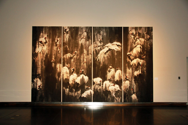 陆国强一直在水墨天地辛勤耕耘,维系着大写意花鸟画的文脉和精神。在江南文化的滋养下,广泛的吸收了传统文化的精华,并立足于现实生活,创作了许多厚重凝练、率真灵动的艺术精品。江苏美术馆对这位才华横溢的年轻艺术家也算是“破了例”,拿出一楼主厅倾力推出。著名理论家左庄伟在布展期间就数次观看了展览,他说,大写意花鸟画看似简单,其实最能代表中国传统文化的精神,在一定层面上发展一小步、推进一个小小的方面都殊为不易,陆国强能在这么年轻的当下,就能把握住传统的命门,日后定有可为。