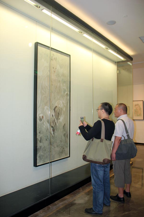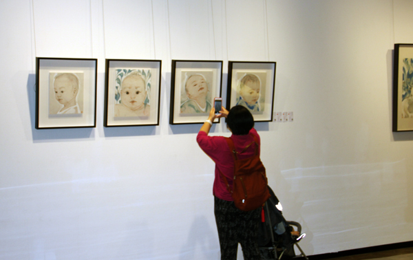 本次展出作品包括具有古典意味的系列创作,在延伸对传统“形与质”的探索基础上,绘画语言由魏晋石刻中发展出属于她的个人风貌。此外还展出一批孩童肖像画,造型简洁而饱满,写出了孩童的灵动天真,含蓄地流露出画家成为母亲后自然的温情和爱意。潘汶汛认为纸墨是有灵性的,画画是作者与纸墨的共同演绎,作品中的世界是纸上的彼岸之境,亦是画家自身在纸上的生长。