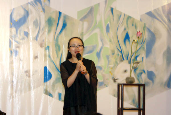 潘汶汛现任教于中国美术学院中国画系,她的作品具有深厚的传统素养与鲜明的个人风貌,是当今70后水墨艺术家中的重要代表人物。潘汶汛的作品刻意保持了与现实表象的距离,古雅素穆,透着天真纯粹的气息。画面的构成与设色,随心舒卷,人物与树石、莲花、小鹿等等构建了万物有灵的独特世界,这也是她内在精神世界和审美理想的象征。