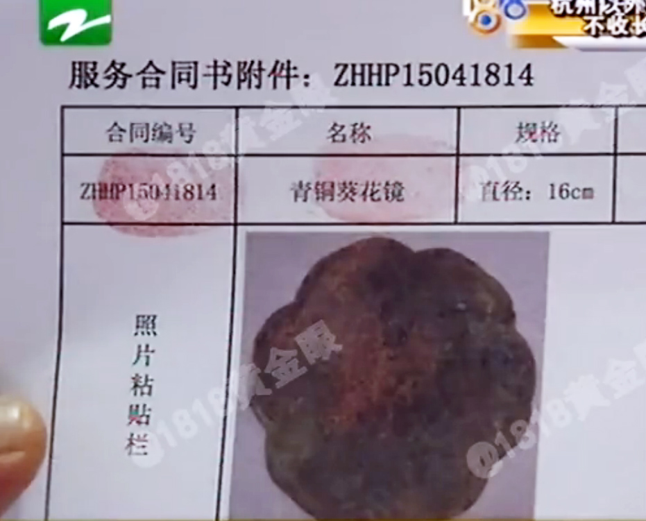 杭州拾荒者收到古铜镜 文化公司称起拍价500万