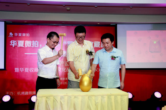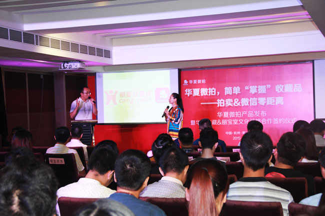 8月26日下午,杭州趣得网络技术有限公司(简称趣得网络)“华夏微拍,简单掌握收藏品 ——拍卖&微信零距离”产品发布会在浙江赛丽美术馆举行。现场趣得网络旗下的华夏收藏和赛丽正宏集团旗下的丽宝堂文化签署了战略合作协议,为收藏品“互联网+”市场拉开新的篇章。杭州暾澜投资董事长姚勇杰、陕西力邦投资总监张宁宁、杭州文物公司经理俞海丽、杭州古玩城总经理于立鹏;上海云毅投资、深圳金斧子、浙江省文化产业学会、招行城北支行等领导都出席现场,为“华夏微拍”隆重面世道贺。