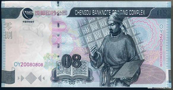 背景:适逢2008年北京奥运会而印制。目前在民间收藏市场上价值达到5000元左右一张。