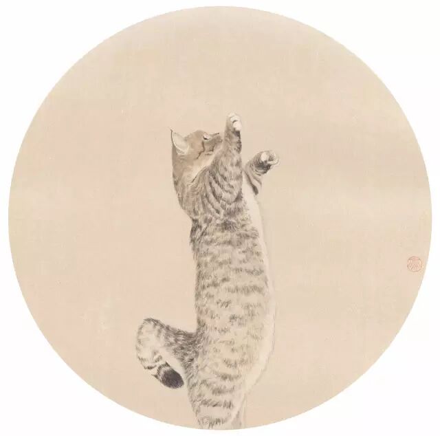 邹俊豪 猫之二 直径43cm 绢本设色 2015