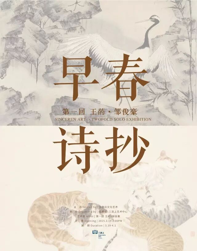 2016年3月19日下午,「早春诗抄」三清上系列双个展(第一回)在信雅达·三清上艺术中心拉开帷幕。同台呈现王菂、邹俊豪两位青年艺术家的国画作品共50余件,是他们近阶段创作完整的一次亮相。两位青年艺术家王菂、邹俊豪都毕业于中国美院花鸟画科,擅长用“新意”描画“古意”,对传统有着独到的理解,在这样的早春时节,展览为清雅春意平添几分诗意。展览将持续至4月1日。