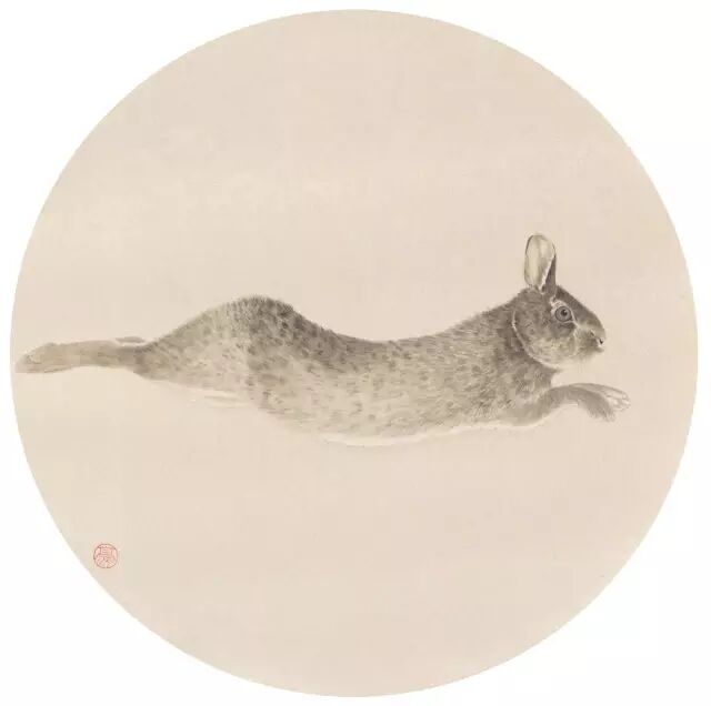 邹俊豪 兔之三 直径43cm 绢本设色 2015