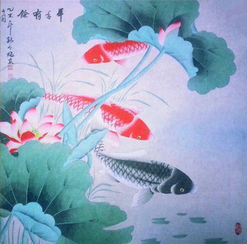 2011年11月,《荷花金色》四条屏入选《天马晚晴》;