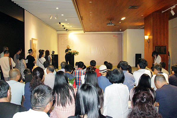 信雅达文化艺术副总经理陈楹在茹峰山水新作展开幕式上致辞