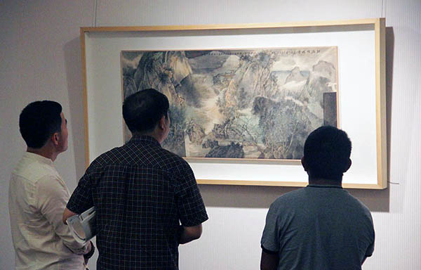 茹峰的绘画溯源传统,直追宋元的大气磅礴,追求“空潭泻春,古镜照神”的境界,作品以拟古、解构与变体等多重面目出现,意在挖掘传统图式所蕴含的文化内涵。并且他的山水融通灵动,可游可居,“山水画有多种趣味,有的拒绝人进入,不可游,如高居翰认为龚贤的山水是堰塞的,此路不通;还有一种人可以走进,移步换景,我的山水是追求可游可居的状态。”他原先追求密体,现在则想慢慢地走到疏体,因此,通过这次展出作品可以观察到茹峰的坚持与变化。