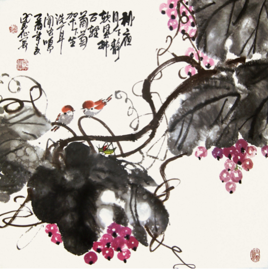 刘凤仙创作,师古而不泥古,继承不照搬,而是紧紧抓住自然界动植 物与人们生活、思想情感的某种联系给与强化表现。着重神、魂、韵的点画与描写,注意美与善的观念表达。用“移生动质"传达花鸟的生命力与其各不相同的特性,强调其“夺造化而移精神遐想"的怡情作用。通过对花鸟画的创作来表达自己的志趣、情操与精神生活,表达内在的思想与追求,缘物寄情,托物言志。墨是中国传统书画中的主要元素,浓、重、淡、清、焦,为运墨五色,墨与色的完美结合是每位画家孜孜以求的至高境界。但 行笔用墨是绘画艺术的皮肉,而笔中的劲力却是画中的风骨和气韵。刘风仙结合自己的审美情趣大胆创新,不断尝试,使作品中的形貌、骨法、质地、光暗及情态神韵逐步形成了自己的风格。气势磅礴而不失小巧细腻,刚劲老辣而不失自然清新,这正是她绘画作品的写照。