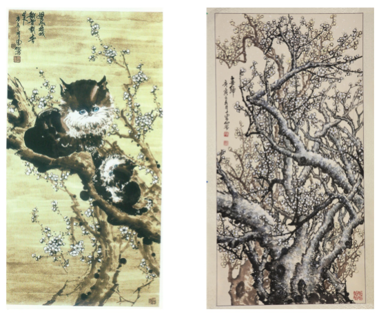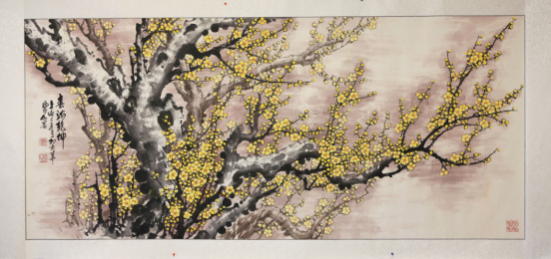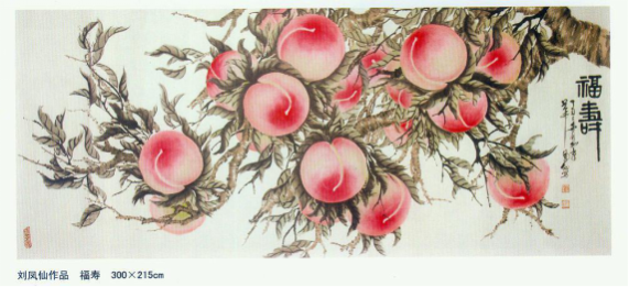 刘凤仙笔下之梅花,气韵生动,墨法自然,凌霜傲雪,气势磅礴, 枝干清癯,苍劲嶙峋。寿桃,饱满圆润,枝繁叶茂,形神兼备,栩栩如生,独家创作,堪称一绝。她的这两类画作行笔豪放恣纵,用墨清新飘逸、潇洒淋漓,飘溢着冷冽的清香,蕴含着饱满的汁水,线条婀娜多姿,枝干凝重厚实,她的其他作品也颇见功力,正因为如此,常常被人们称为‘女中豪杰’