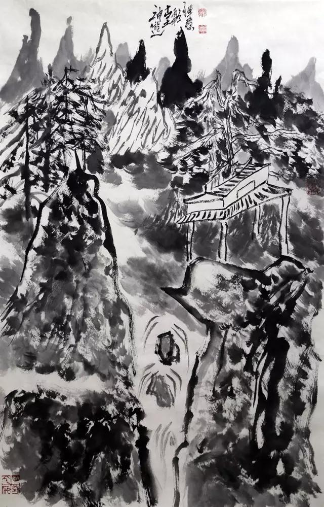 换换作画,他从无序中走来,入众多画家之怀,夺造化之工,应禅宗之灵,形成了自已的巧妙构想,同时,他在大胆使用墨墨块的同时,并没忽视线面的转合生发关系,在自然的互换中发挥了自已灵活多变的机制,山水画其实就是在营造一种意境,而这意境形上基础便是画者的知识,换换喜谈禅宗,自然地流露于作品之中,牢牢地掌控了画面的节奏,画中的一块墨给我们带进了一种宁静的沉思,在想象中没有脱离现实生活,无论远近的房舍,还是充满神凝的庙宇寺院都体现了人和自然的和谐及统一。 看到换换的进步我感到由衷的高兴!并祝他在禅画的世界里自由翱翔。 ——唐凤岐(当代著名山水画家,中国美协会员,“97”中国画坛百杰画家)