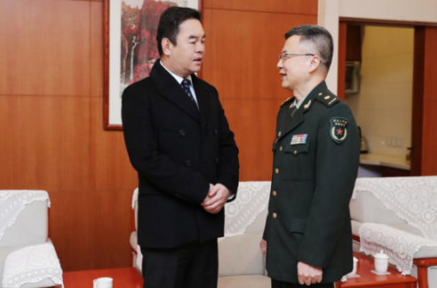 图 军旅画家孙立新与承办方雪松控股董事局主席张劲亲切交流