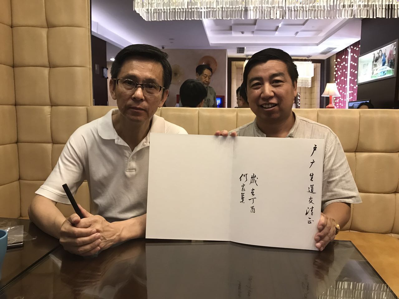 2017年7月17日全国政协委员、中国美协副主席(何家英)与人民大学艺术学院书画导师、中国企业报道理事会副主席户广生进行了学术交流!何副主席就户广生老师的作品给予了极高度评价!两人就书画艺术方面讨论了如何画好中国画、如何取法宋元与现代元素相结合、如何看待西画与中国画的关系、如何看待郎世宁对中国画的影响等问题!最后何家英老师赠送户广生老师最新画集并签名留念。