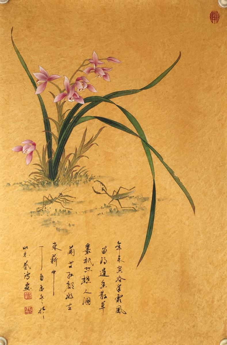 户广生的笔道,已得大师张大千用笔之能。另外,这幅作品又有能勃发画意的诗歌题句,书法也是画面多姿怡美的风格,诗、书、画风协调一致,再辅以印章点染,统篇而得综合艺术的臻美品质——兰花主题画品质,当以户广生的构画为尊。