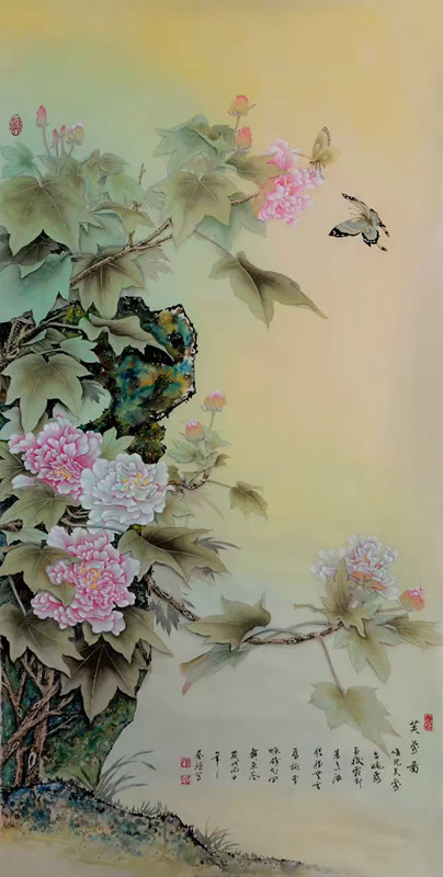 户广生的系列《牡丹图》,工笔精作。户广生画牡丹,笔墨技法除了极好继承宋代院体绘画传统,又博采众长,施以自己的肌理技法,形成了个人鲜明的艺术特色:牡丹图笔墨严谨工丽,精微致尽,色彩淡艳,神韵丰盈,形态逼真却超越自然,有着浓郁的生活气息,赏其牡丹,如意临牡丹园,有色,有味,有韵,有神,内涵丰富,雅俗能赏,装饰性和艺术性都达到了崇高水准,挂于堂厅生辉,藏于箱底升值,所以无论是普通群众还是专业投资者,极其中意户广生的《牡丹图》,他的牡丹图是扎根于生活的艺术高品。