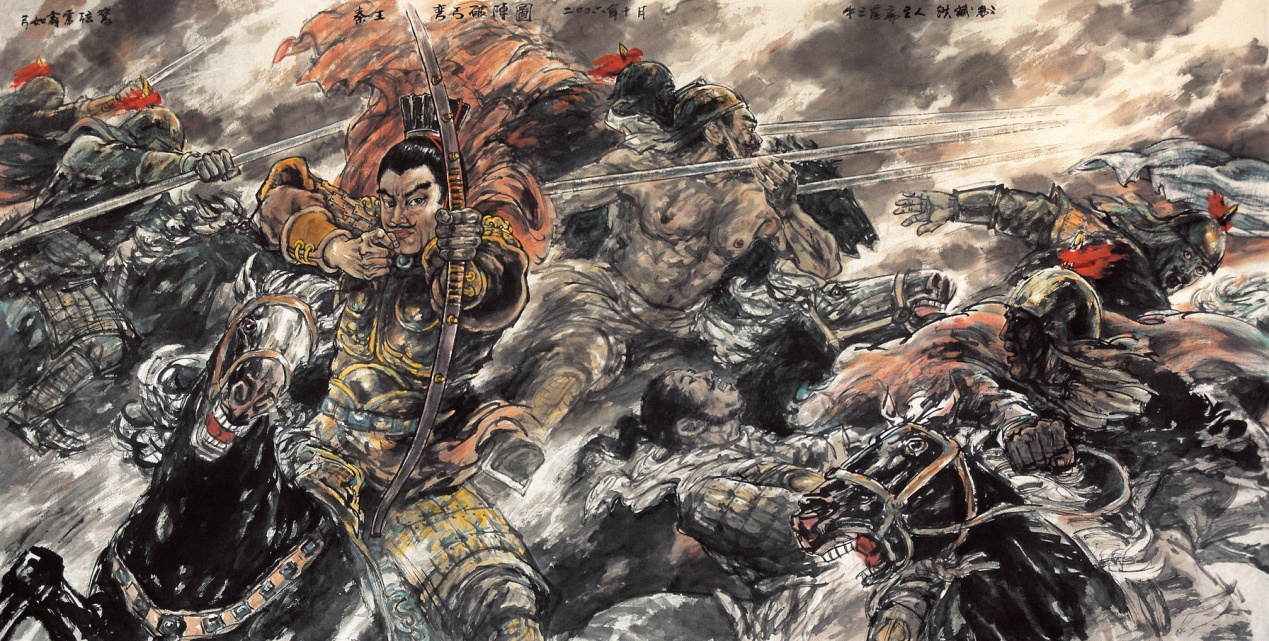 20世纪以来,强国与跻身世界现代化的愿望成为几代人渴望以久的梦想,更成为一批新锐青年和知识精英挥之难去的精神追求和文化口号。“唯新则举”、“唯洋是蟾”、“唯土乃卑”似乎已成为市井大众的普泛化心态,民族文化内核的精髓与品格和传统文化的魅力在不自信地与西潮西学的比照中,文化遭到了可怕的心理内毁和精神消磨。我真切地感受到在世纪之交,当中国经济持续发展和大众物质生活水准不断提升,高科技更深地介入到当代人生活的方方面面之中,随之而来的经济全球化背后西方文化艺术观念的侵入影响所造成的中国文化人、知识分子受置于某种挤迫、紧迫、失重、无奈状态以及由此产生的迷茫、焦虑心态,文化何为?艺术何为?精神从何依附?这是当代文化人和知识分子无以回避的主题。于是相当一部分的文化人和艺术家放弃了已有的精神立足点,不断修正、调适着个人文化理念和创作手段,在心犹不甘,却又欲罢不能中融入到缤纷的通俗消费文化中去。也有一部分文化人和知识分子试图从升腾而起、八面来风的大众文化的元气之中汲取与现实抗衡的力量,持守一方灵魂的净土,甚至不惜反其道而运用当代艺术形式,套取通俗题材去张扬古典精神,进而在亦文、亦士、亦艺的文化边缘环境中通过强化个人的话语来表达自身的感受,通过寻求阳刚阔大的风格和言说方式来达到自我精神的救赎努力。正是从这个意义上看,我以为易洪斌的大写意马也正是他个人人文精神取向的写照和表露。