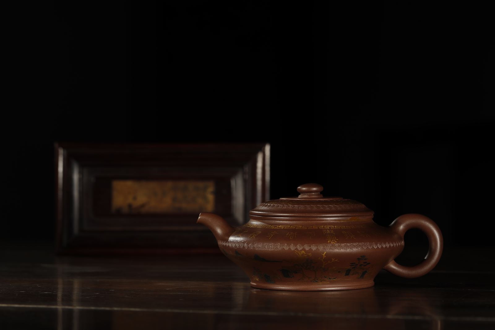 2、从形与质推断年代。不同时代的产品和生活用品都有其时代特征。早期紫砂茶具以实用为主,装饰为次,故其壶型拙朴大方,略无花巧,茶壶出水处常为单孔。随着紫砂壶装饰作用的增强,壶型日趋文巧。如早期明显多夹粗砂,清以后夹砂日细,壶表也日益细腻。从这些特征可推断藏品的相对年代。