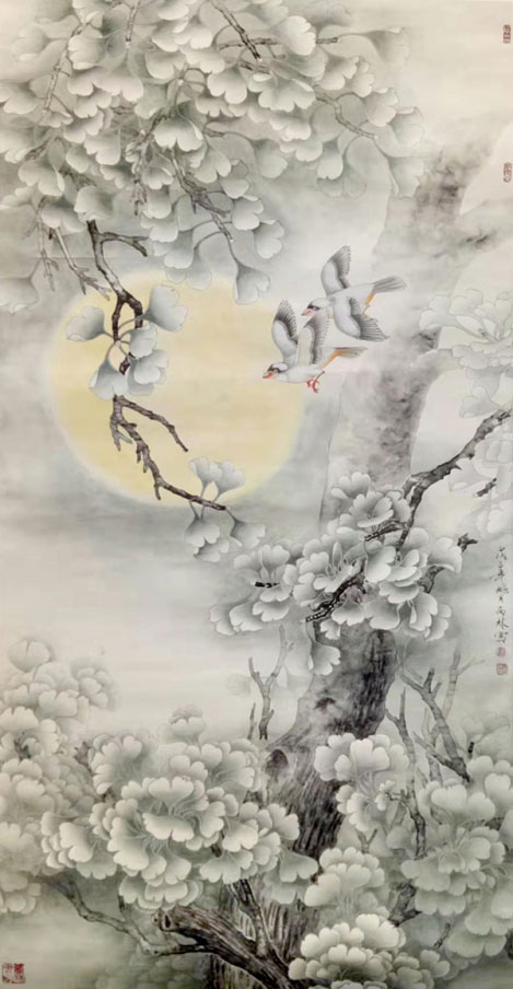 首先他从工笔花鸟画的题材的转换作为切入点。他认为传统题材必然有传统的程式或者叫套路。由于经过许多历代优秀画家的呕心沥血的探索,有的无疑是优秀的,但历史变了,作者变了,情感变了,技法也应改变。“笔墨当随时代”,否则,用古人的笔墨程式去画古人画过的题材,势必程程相因,失去原有的鲜活性和创作的生命律动。