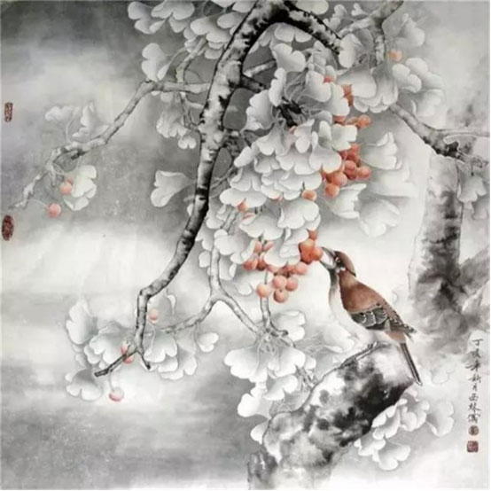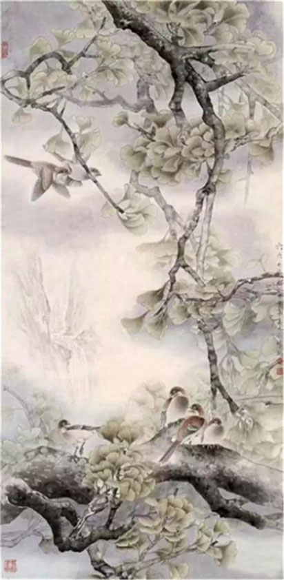 锁定题材并非难事,难在使主题得以深化、升华,从而塑造一种属于个人符号的载体,传达出作者“情、趣、意”,这才是一个画家的艺术灵魂所在。为此他深入对中国古典文学的学习。在《诗经》中寻找银杏倩影,在魏晋散文里搜索银杏品格,到农村山区去聆听有关银杏传奇的神秘故事。那是一个个充满虔诚敬畏的老人真心诉说。
