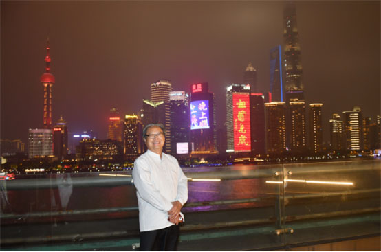 中华人民共和国70周年华诞,最后一天假日10月7日晚7点在上海外滩一酒店屋顶花园上,上海市书协名誉主席、上海中国书法院院长周志高在其所书写"祖国万岁"(行书、从毛笔写"祖"字第一点开始、逐步一点一划写出四个字、在6千多平方米荧屏上依次展示)陆家嘴外滩之窗大荧屏灯光秀为背景的黄浦江夜景下留影和接待新闻界记者采访。据介绍,每晚至10点半共播出20次、播映一个月。