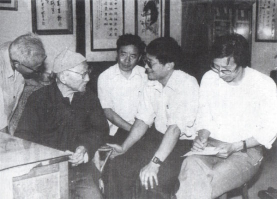 《书法》杂志1979年全国群众书法大赛,全国一万多人投稿,光绪末代秀才,百岁老人苏局仙获得一等奖。采访苏局仙(左二),右起 刘小晴.周志高.潘德熙。1979年9月下旬,《书法》杂志执行主编周志高(右二) 、 副主编刘小睛(右一) 、责编潘德熙(右三)采访〝全国群众书法竞赛〞一等奖获得者,百岁老人苏局仙(右四) 。