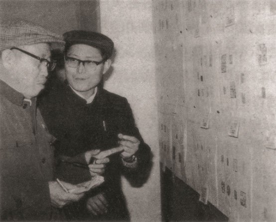《书法》杂志主办的全国首届篆刻征镐评比在苏州举行评选,图为在评选会上,周志高与北京评委康殷先生交流情况。黄椁,徐利明,石开,陈茗屋等十人获一等奖,在全国篆刻界立即产生重大影响。