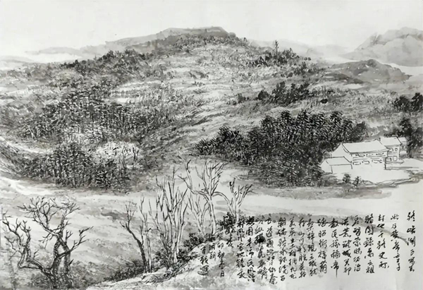 在笔墨技法上,画家运用了娴熟的笔墨技巧。山石的描绘通过丰富的皴法和墨色变化,表现出山石的质感和立体感。树木的刻画则运用了不同的笔法,有的树木枝干挺拔,有的则显得苍老虬劲,展现出树木的不同形态和生命力。