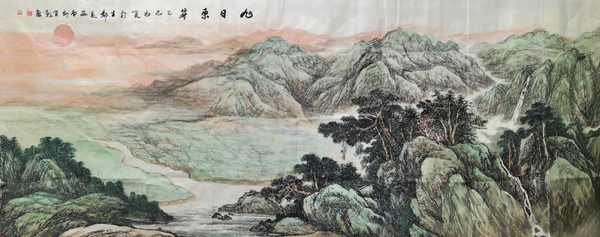 这张丈二的巨幅,让我想唱“红太阳张边疆,青山绿水披霞光---”。正能量都爆棚了!我强烈推荐把该作品挂到大会堂的金色大厅。既散发着传统中国画的气象又传递着时代主旋律的音符。这便是创造的力量。