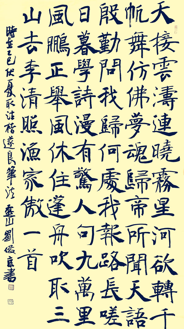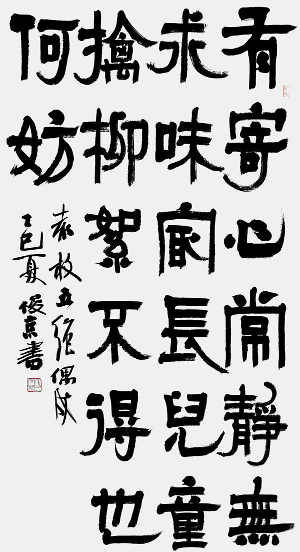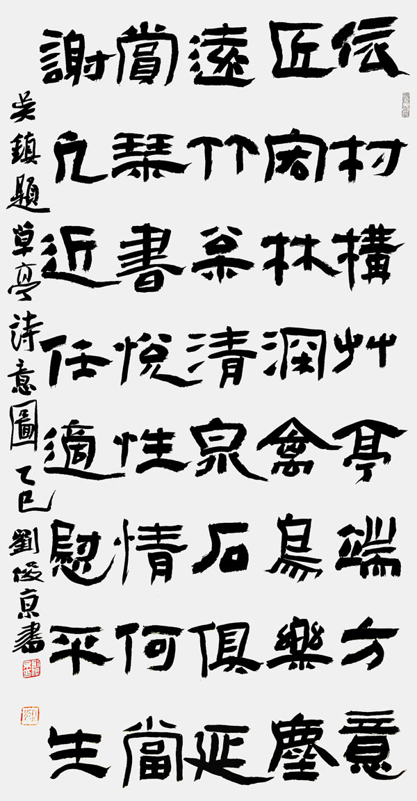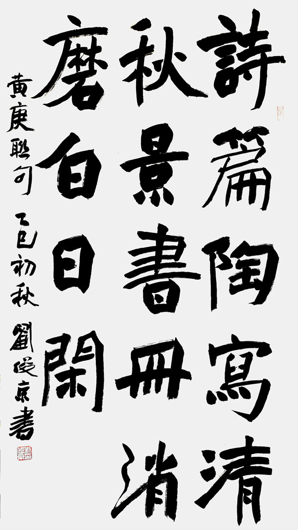 刘俊京作品流淌着刘俊京先生数十载的笔墨春秋。早期作品筋骨开张,可见其对传统的深刻领悟与坚守;中期笔意渐趋浑厚,融碑帖于一炉;近年之作更是臻于化境,于洒脱中见沉静,在法度内显自由。无论是擘窠大字的雄强磅礴,还是尺素小品的清雅蕴藉,每一笔都仿佛带着呼吸,是技法与性灵的自然交融。