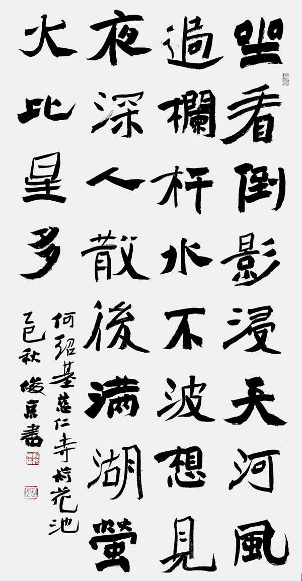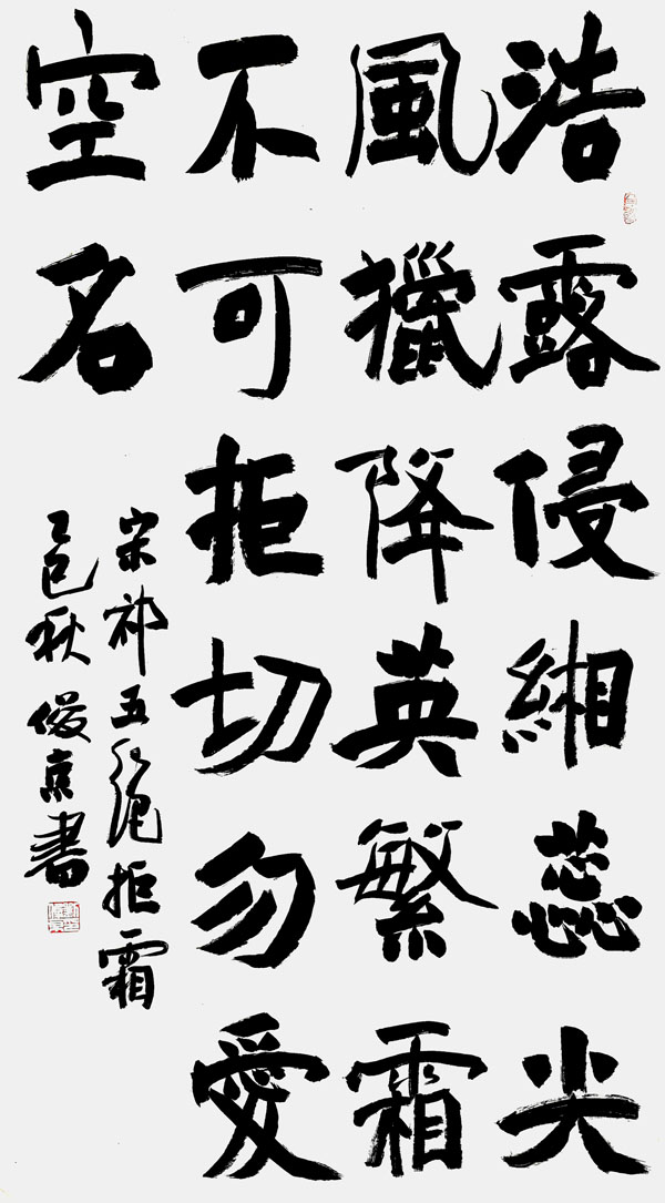 俊京先生师从当代书法大家欧阳中石先生,其书法艺术根植于传统沃土,又洋溢着时代气息。其行草如行云流水,意气贯通;楷书则端严中正,风骨凛然。尤为可贵的是,其字如其人——没有乖张奇崛的刻意,唯有从容敦厚的书写,在点画转折间透出温润如玉的君子之风。