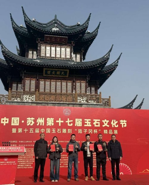 2025年11月27日,中国·苏州第十七届玉石文化节暨第十五届中国玉石雕刻“陆子冈杯”精品展在苏州桃花坞美术馆隆重启幕。本届展会由专业评审委员会秉持公平公正原则严格评审,从斗宝大赛里面200余件原石中精挑细选出3件“最美和田玉”。其中,玉石作品“昆仑仙桃”凭借卓越品质与独特魅力脱颖而出,一举斩获“最美和田子玉”称号及金奖;展会同期还特别颁发“两岸文化交流特别贡献奖”,为促进两岸文化交流注入新活力。