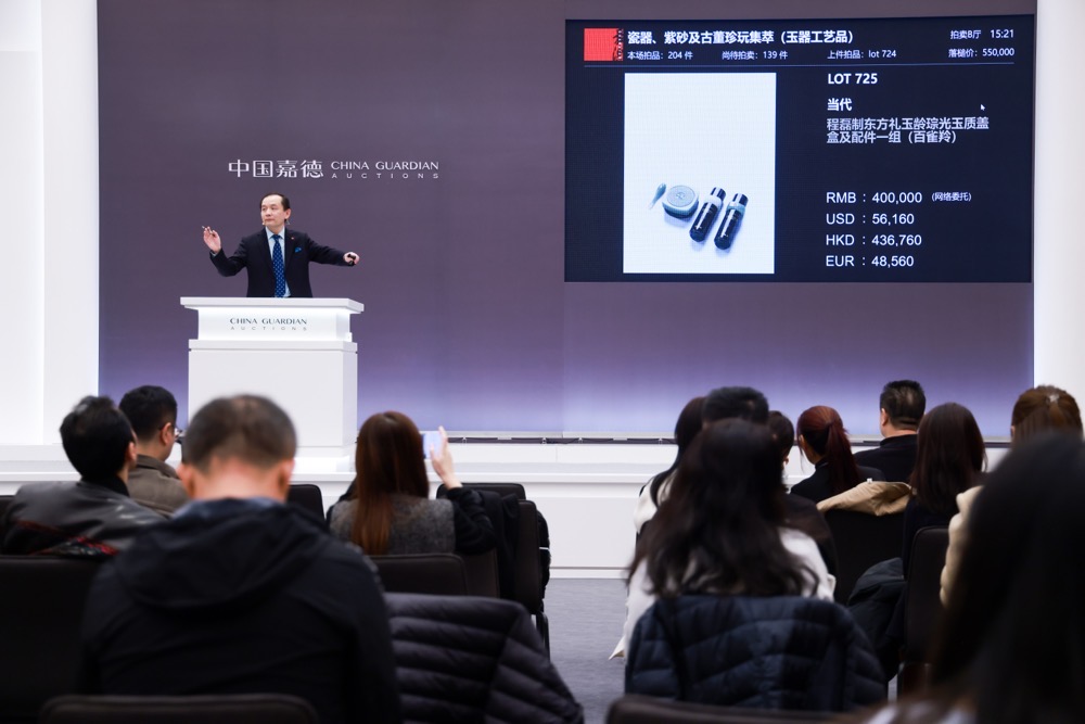 中国嘉德2025年秋季拍卖会现场,清脆槌响,落定了一段属于中国品牌与文化艺术的崭新佳话。国货经典品牌百雀羚联袂苏州玉雕非遗传承人程磊,以“玉琮”为灵感,分别选用新疆籽料与青海料,匠心创作出“云雀奉礼”与“玉龄琮光”,并最终以近110万元高价成交。