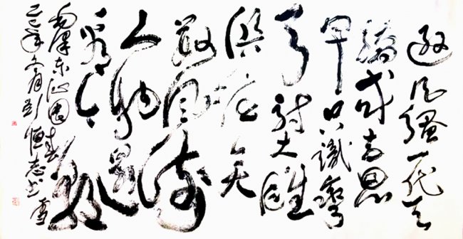 如果说对传统的坚守是刘恒志书法的“骨”,那么跨界艺术的滋养便是其书法的“魂”。作为集文学家、剧作家、诗人、音乐家于一身的全能艺术家,他的书法作品中,始终流淌着多元艺术形式的养分,蕴含着丰富的情感维度与文化内涵。这种跨界优势,让他的书法超越了单纯的笔墨技巧展示,成为承载思想、传递情感的艺术载体。