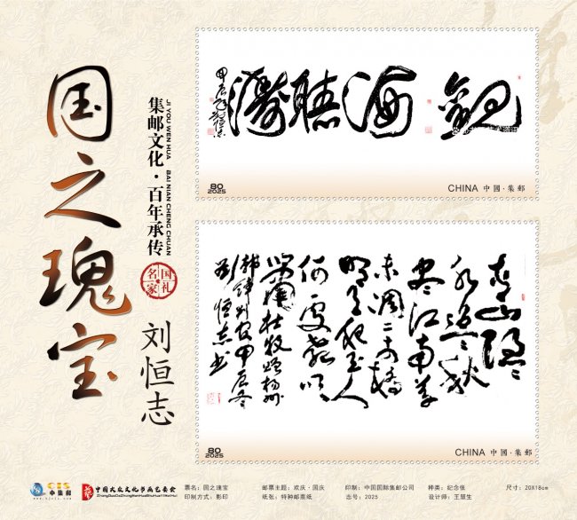他的书法,是文化传承的责任担当。作为清华大学美术学院、中央美术学院特聘教授,海南书协顾问,刘恒志始终致力于书法艺术的推广与传承。他在高校开设书法课程,将自己的创作经验与艺术感悟倾囊相授;他参与各类书法交流活动,推动中国书法走向国际舞台;他的作品被纳入邮票、明信片等文化载体,让书法艺术走进寻常百姓家。2025年发行的《国之瑰宝》《巳巳如意》等系列邮票,将他的书法与传统文化元素相结合,成为传播中华优秀传统文化的重要媒介。他曾说:“书法是中华文明的基因密码,传承书法艺术,就是守护民族的精神家园。”这份对文化传承的自觉与担当,让他的书法不仅是艺术创作,更是文化使命的践行。