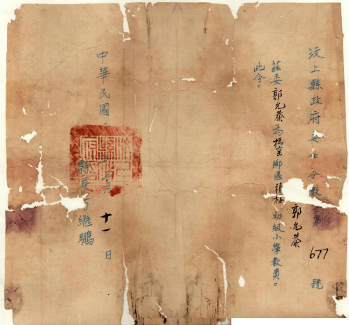 清明前夕,汶上珍贵红色史料现身!89年前教员委任令镌刻烽火信仰!
